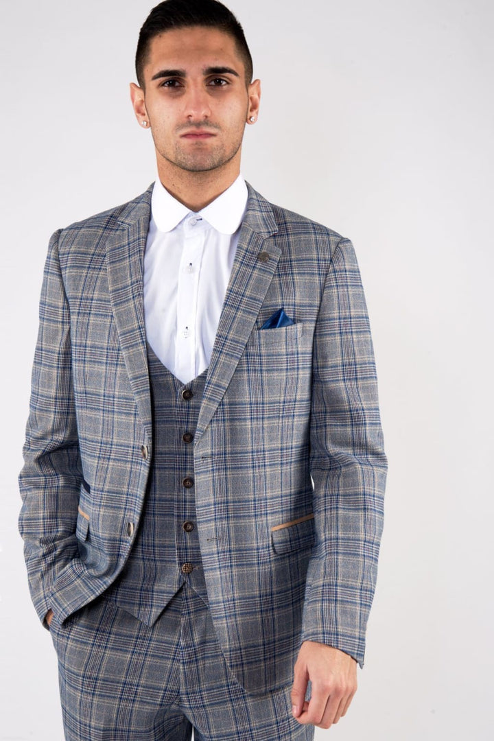 Marc Darcy Enzo Blue Stone Check Blazer - MENSWEARR.COM - Jackets & Blazers