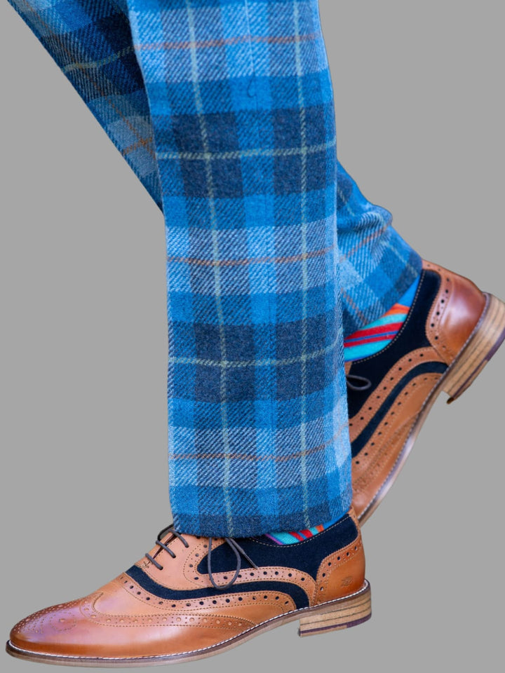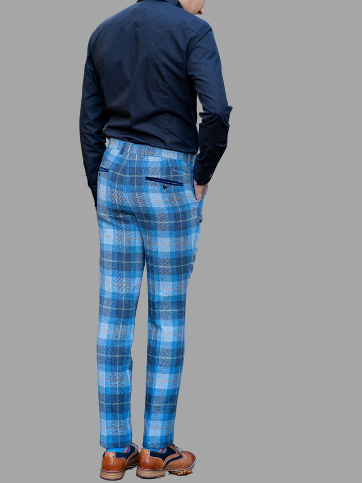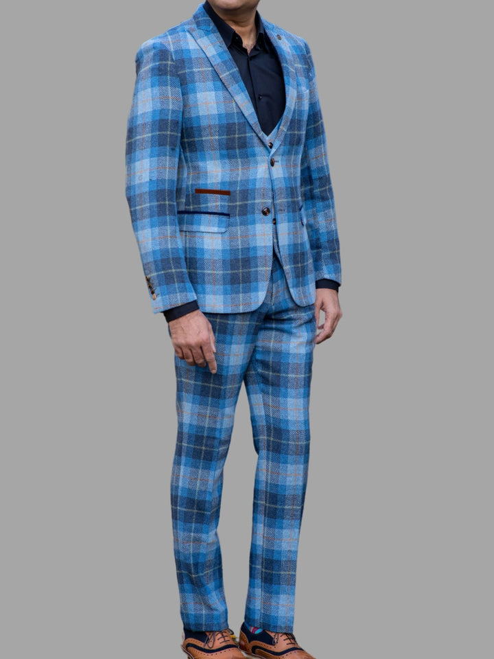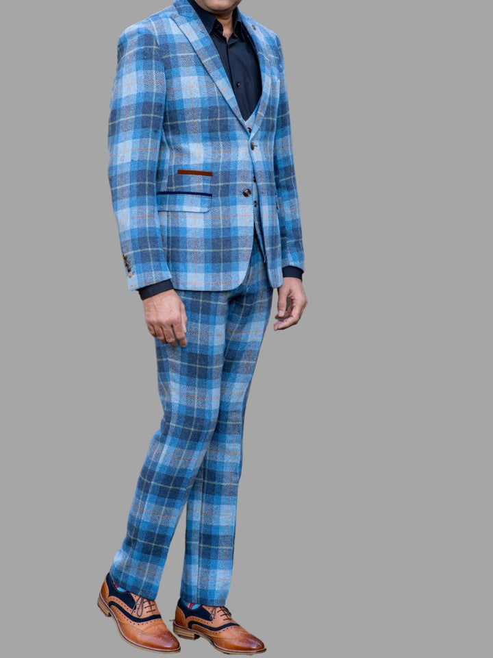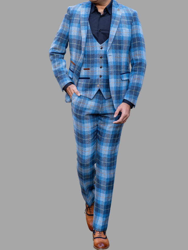 Marc Darcy Morris Blue Tweed Check 3 Piece Suit - Suits