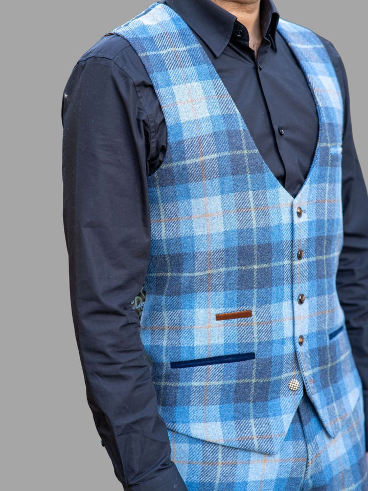 Marc Darcy Morris Blue Tweed Check 3 Piece Suit Want Something new yet sharp and elegant for your day? Check out the New Marc Darcy Morris Blue Tweed Check 3 Piece...
