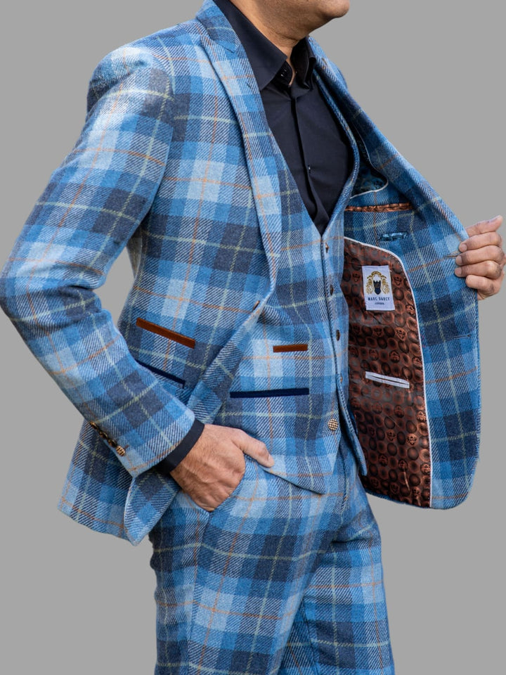 Marc Darcy Morris Blue Tweed Check 3 Piece Suit