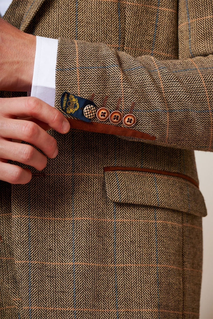 Marc Darcy Ted Tan Heritage Tweed Check Blazer