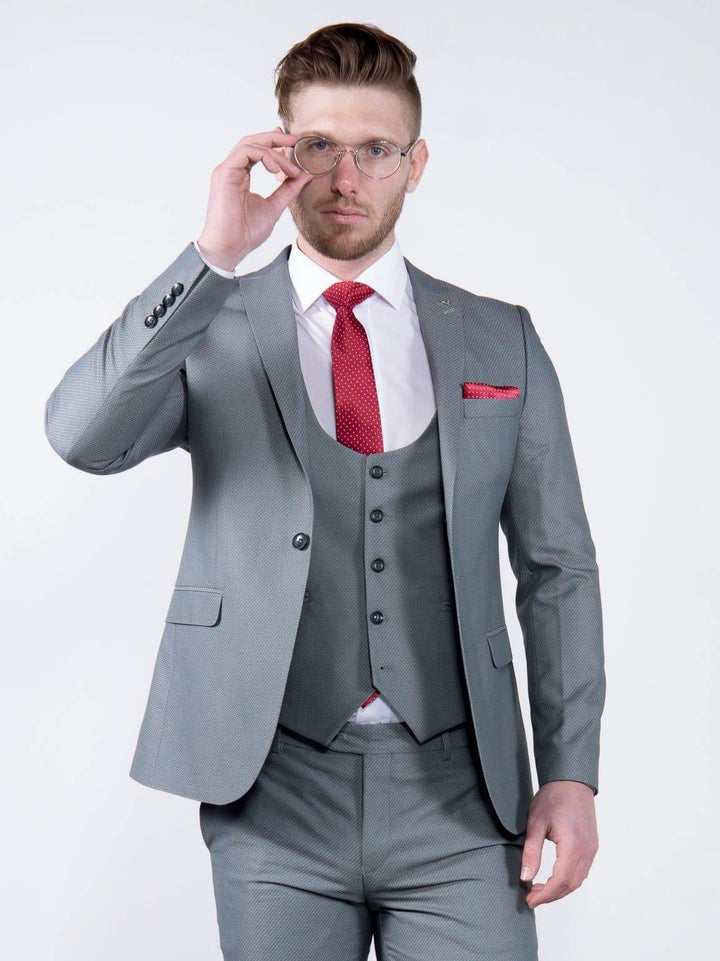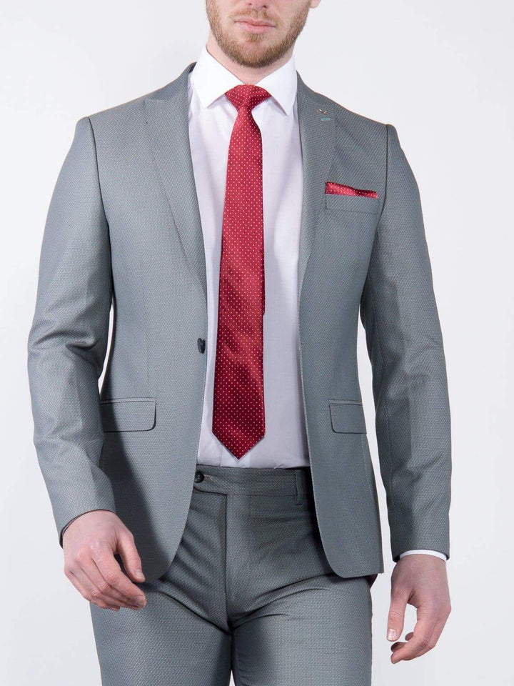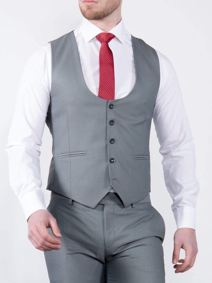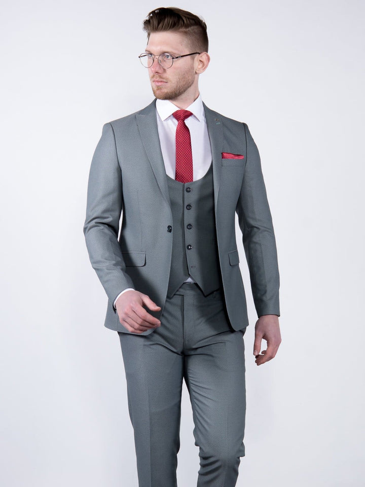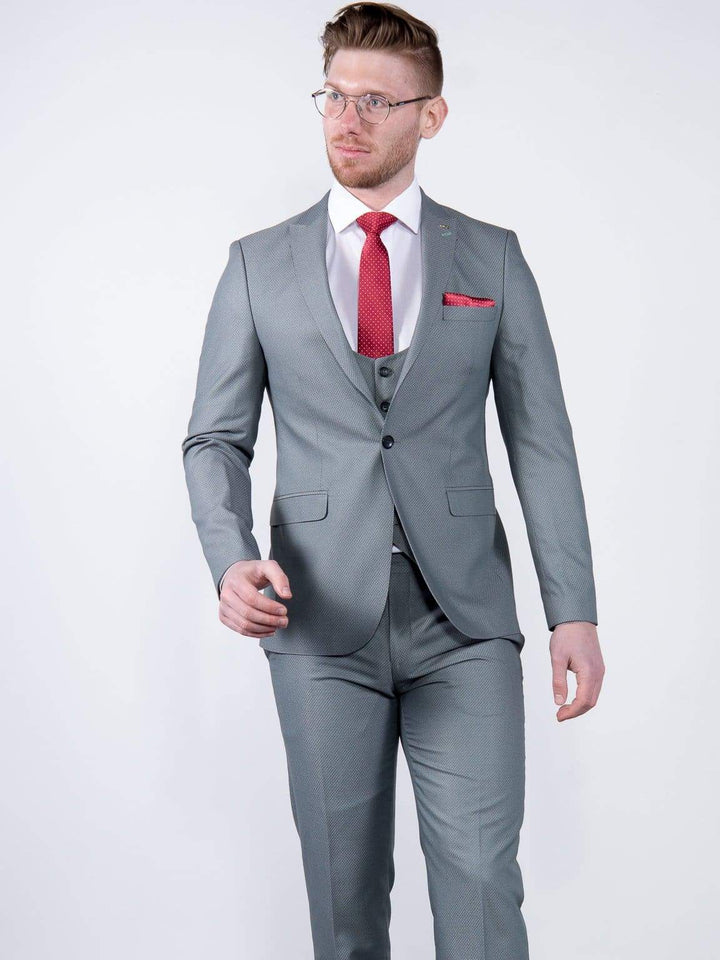 Wessi Light Grey Men's 3 Piece Slim Fit Textured Suit