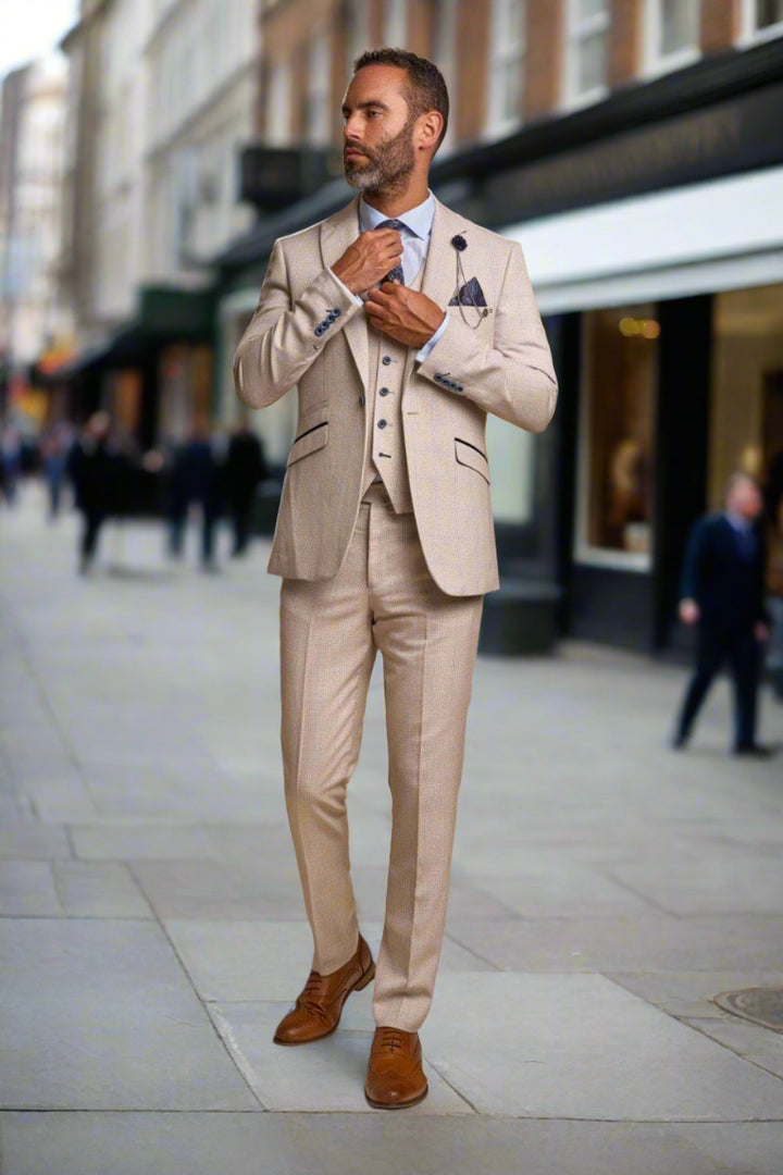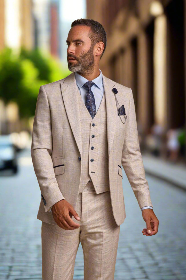 Cavani Caridi Men's Beige Slim Fit Tweed Check Blazer
