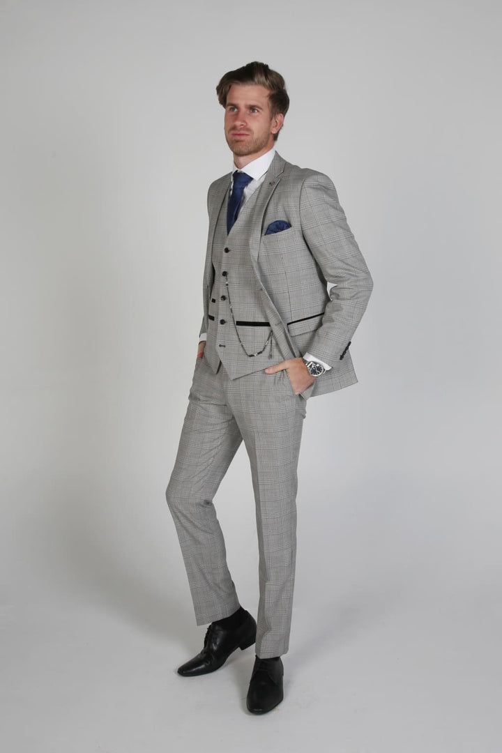 Hugo Grey Men's Three Piece Suit This timeless piece flatters from every angle! Sewn to perfection, our Hugo can be worn to any occasion. Wear this suit to work with its...