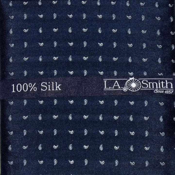 This Blue Mini Paisley Silk Hank by L A Smith is perfect for weddings and other formal occasions. The hank is It's quite versatile and can be used to dress up your look or complement a more casual style. The hank has a textured look and several off-white diagonal lines, giving it interest.