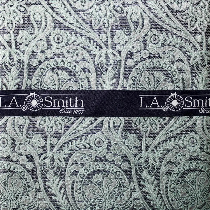 Elevate your style with L A Smith's Paisley Lace Hank. Versatile and elegant, it adds sophistication to any formal occasion. Its unique textured design and off-white diagonal lines make it stand out from the crowd. For a fashionable look, pair it with a textured shirt and matching waistcoat. For a more formal event, complete the look with a navy or grey suit and white shirt. A pocket square is a must-have for the stylish individual.