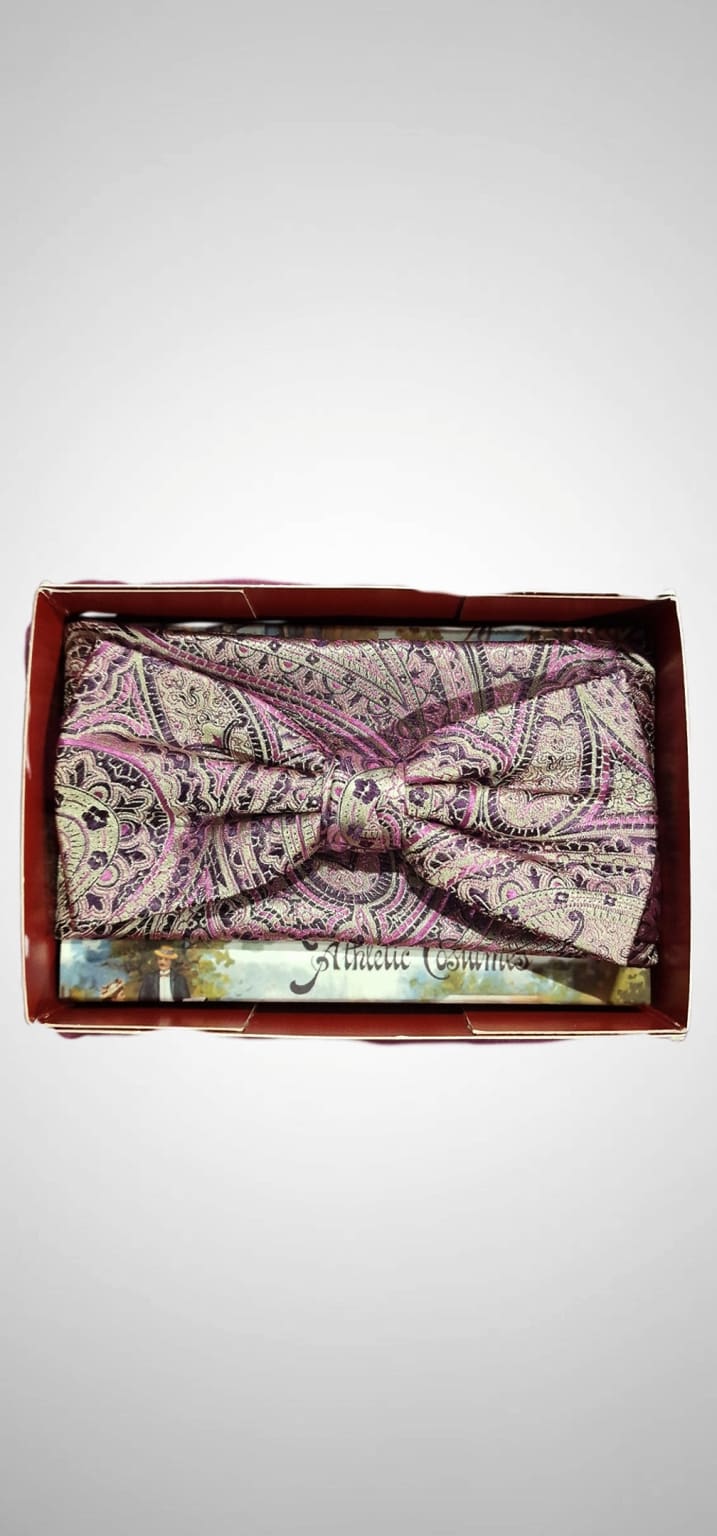 L A Smith Fuchsia Ecru Paisley Silk Bow Tie And Hank Set
