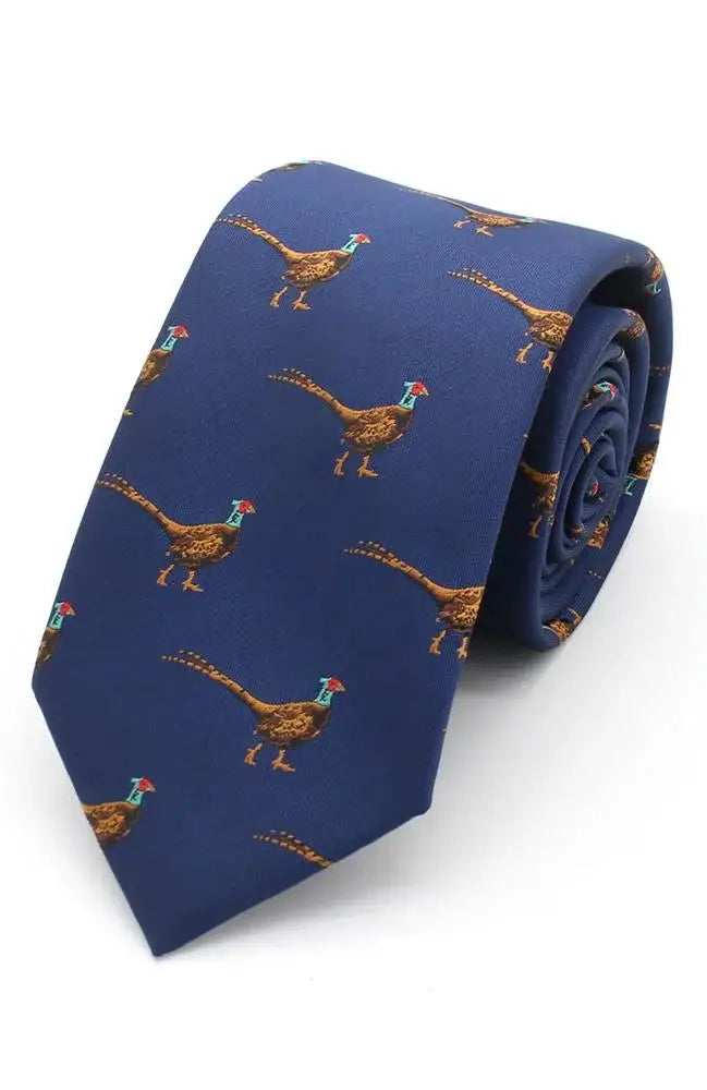 L A Smith Navy Pheasant Silk Tie - Accessories
