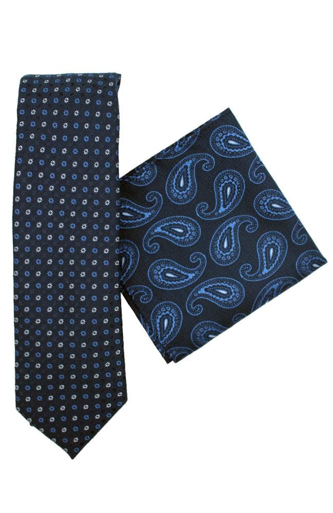 L A Smith Poly Blue Paisley Tie And Hank Set