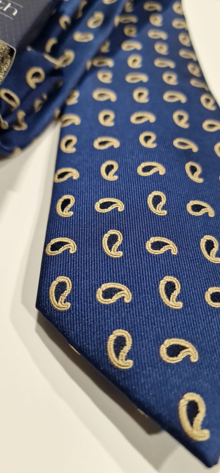 L A Smith Blue And Yellow Paisley Tie And Hank Set   This Blue And Yellow Paisley Tie And Hank Set by L A Smith is a versatile accessory for weddings and...