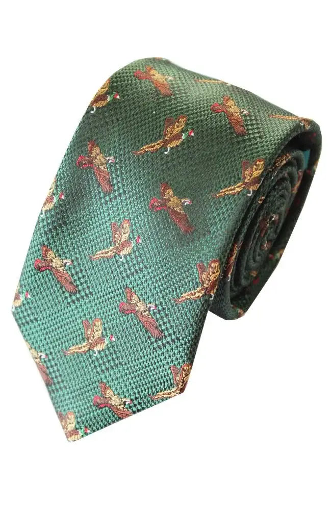 LA Smith Country And Hobby Bird Check Silk Ties - Green Accessories