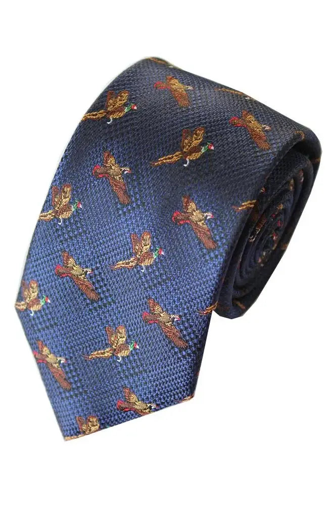 LA Smith Country And Hobby Bird Check Silk Ties - Blue Accessories