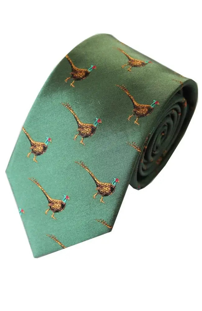 LA Smith Country And Hobby Pheasant Silk Ties - Green Accessories