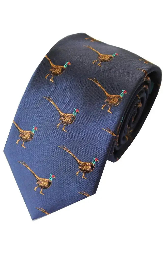 LA Smith Country And Hobby Pheasant Silk Ties - Blue Accessories