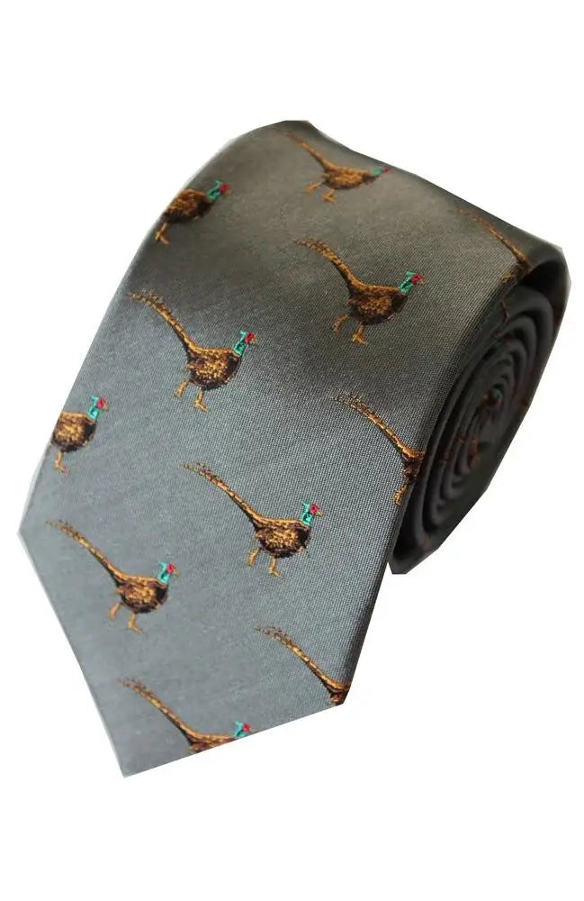 LA Smith Country And Hobby Pheasant Silk Ties - Grey Accessories