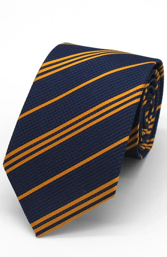 LA Smith Navy And Yellow Stripe Poly Tie - Accessories