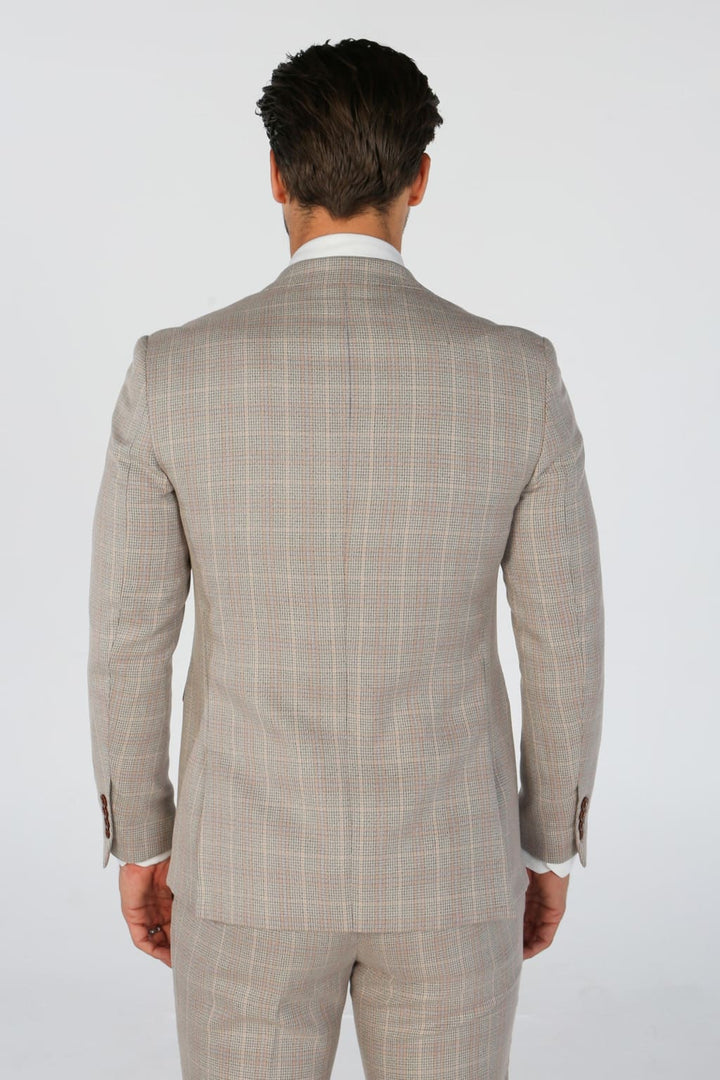 Upgrade your style with the Leo Beige Men's 2-piece suit—a distinguished choice that blends timeless charm with a modern checkered design. The subtle beige check pattern adds depth and character, making...