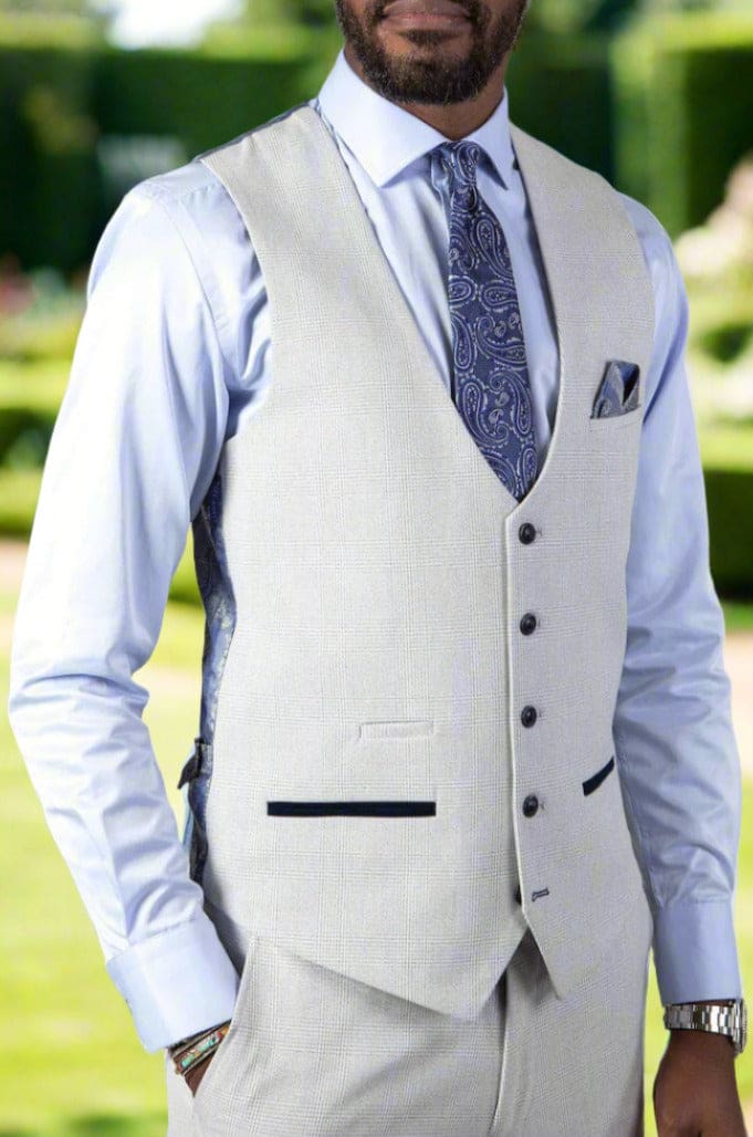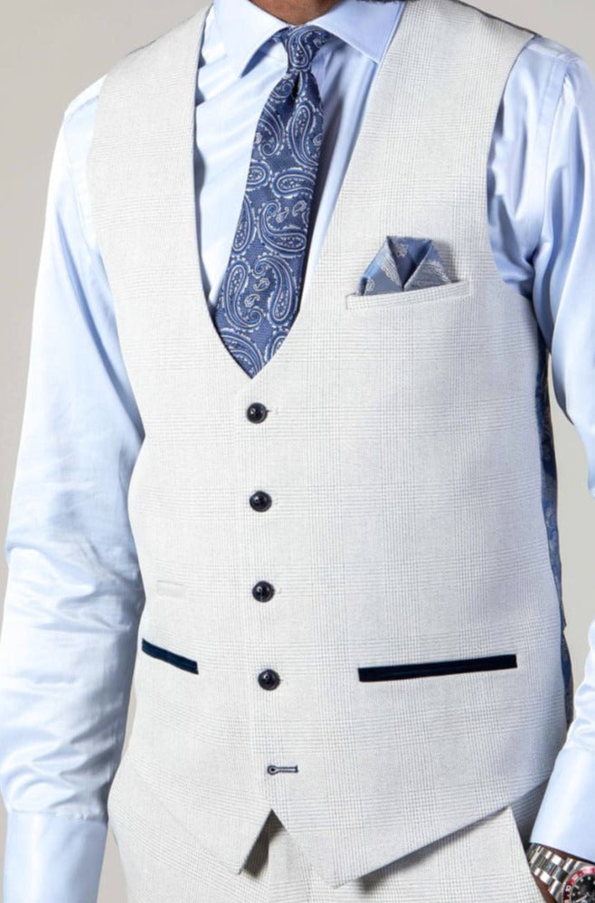 Marc Darcy Bromley Grey Stone Single Breasted Check Waistcoat