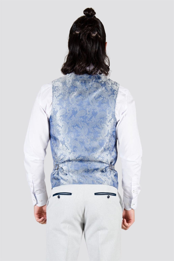 An instant classic guranteed to see you through every occasion with stylish ease, this single-breasted waistcoat features all the customary design details you've come to expect from MD. With a 5 button closure, bold cool blue paisley printed lining and matching pocket its a versatile piece you'll wear again and again