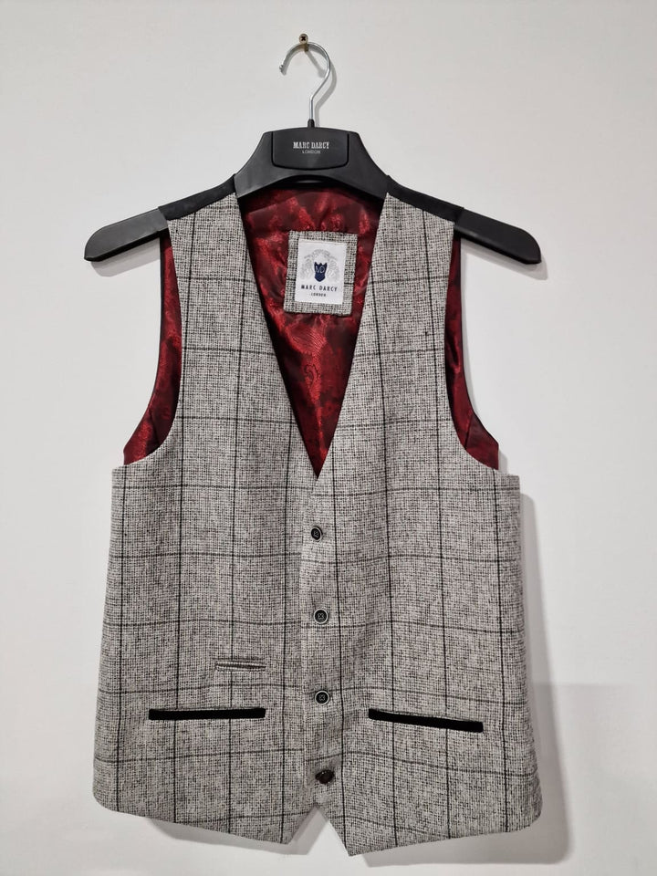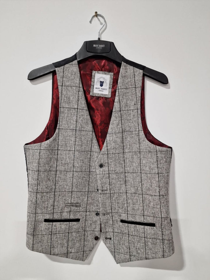 Marc Darcy Len Jose Grey Black Tweed Waistcoat - MENSWEARR.COM - Men’s Waistcoats