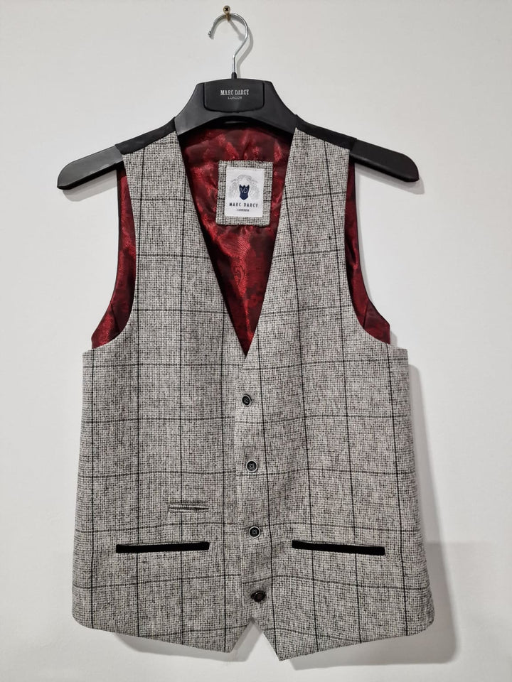 Marc Darcy Len Jose Grey Black Tweed Waistcoat The Marc Darcy Len Jose Grey Black Tweed Waistcoat combines timeless tailoring with contemporary versatility. Crafted from premium tweed in sophisticated grey and...