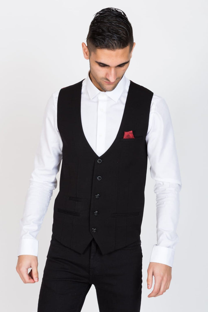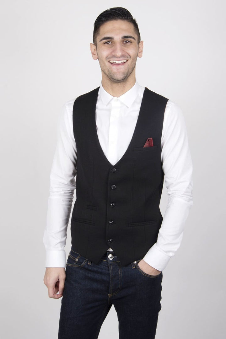 Marc Darcy Kelly Mens Black Single Breasted Waistcoat - Suit & Tailoring
