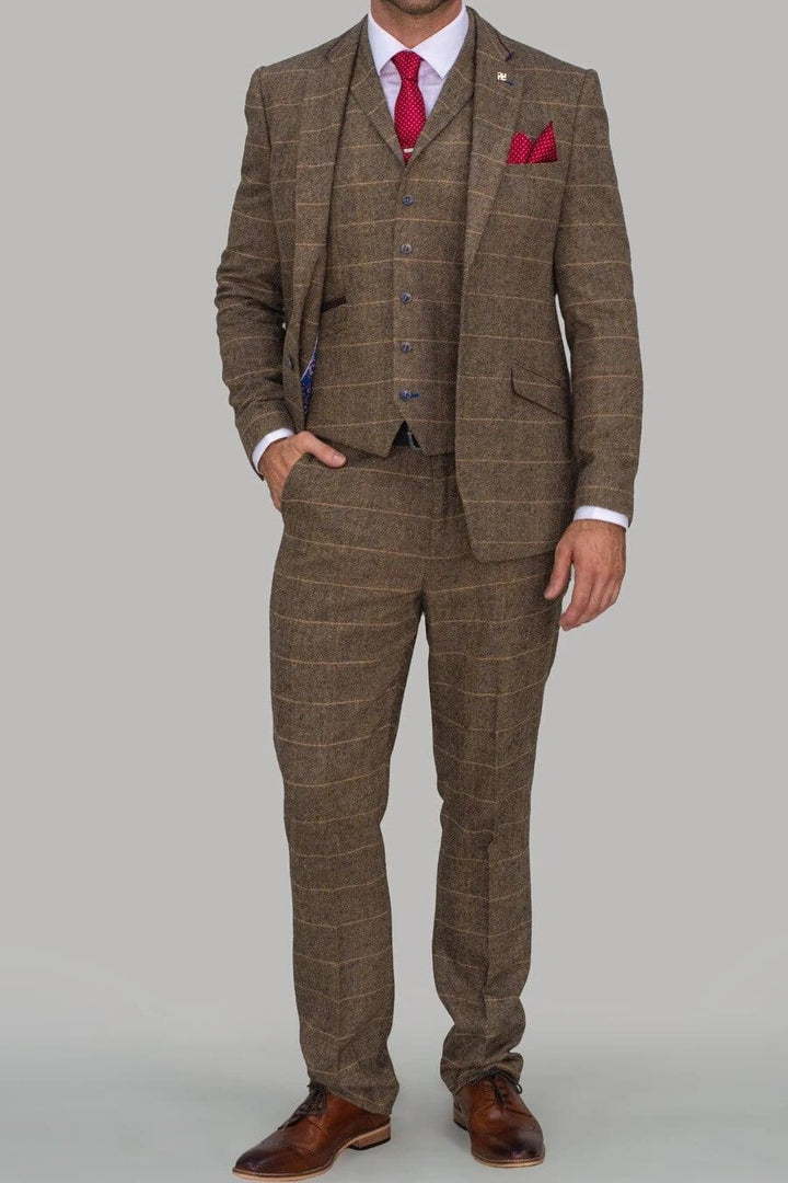 Men’s Albert Tan Brown Tweed Suit Mix & Match by Cavani - Suit & Tailoring
