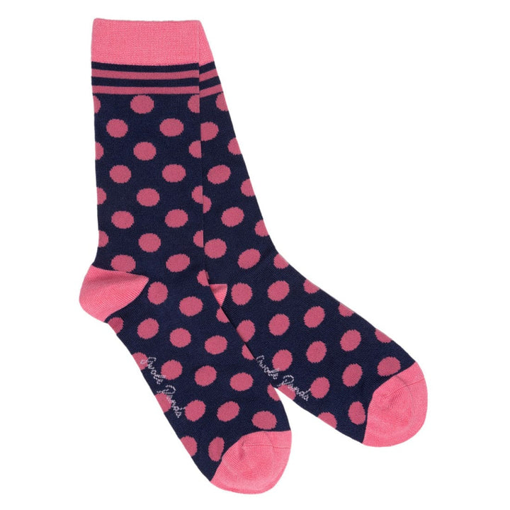 Navy and Pink Polka Dot Bamboo Socks - UK 4-7 (US 5-7.5 / EU 37-40) - Socks