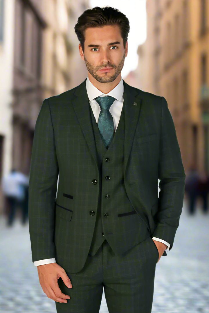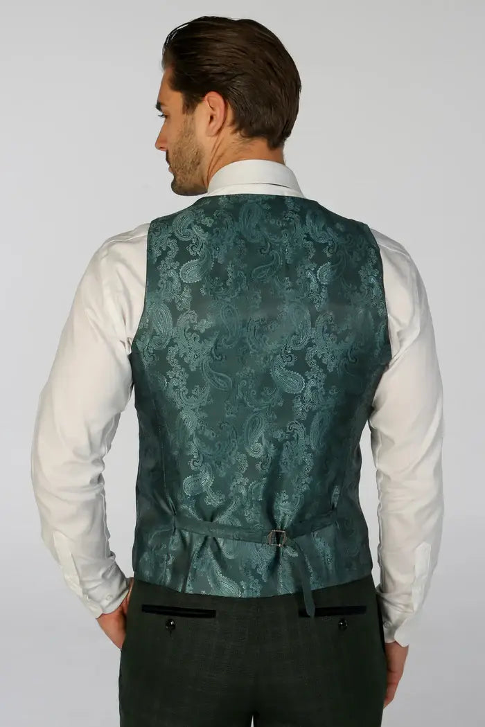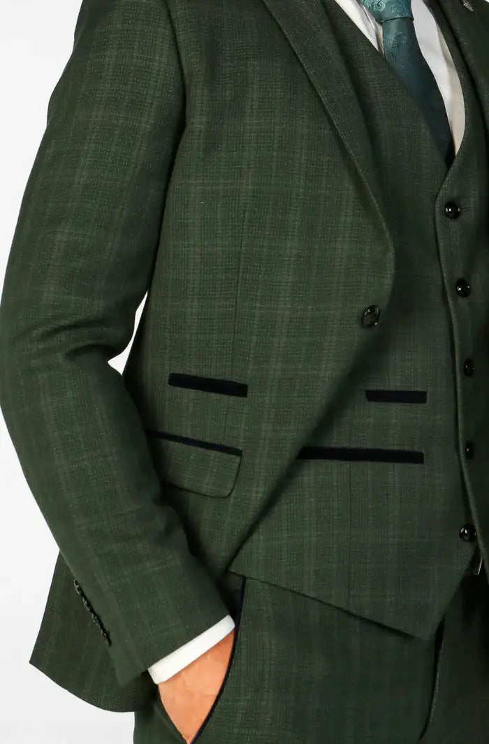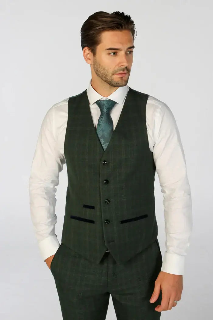 Paul Andrew Leo Men’s 3 Piece Check Suit - Beige or Green - MENSWEARR.COM - Green / 34 / 28 - Men’s Tweed Suits