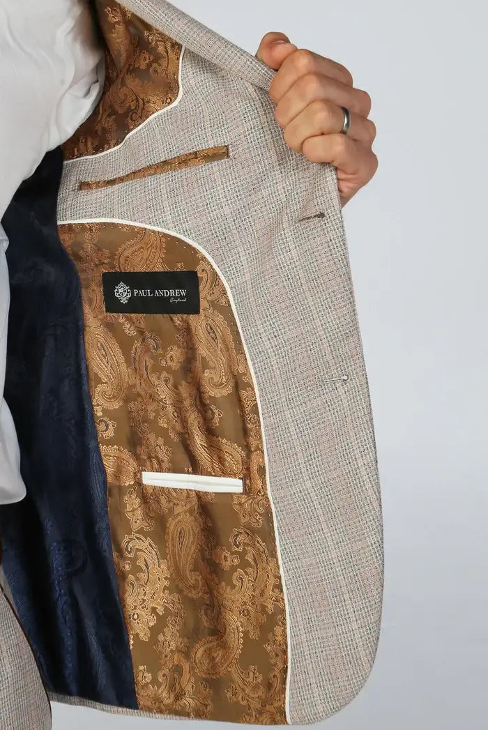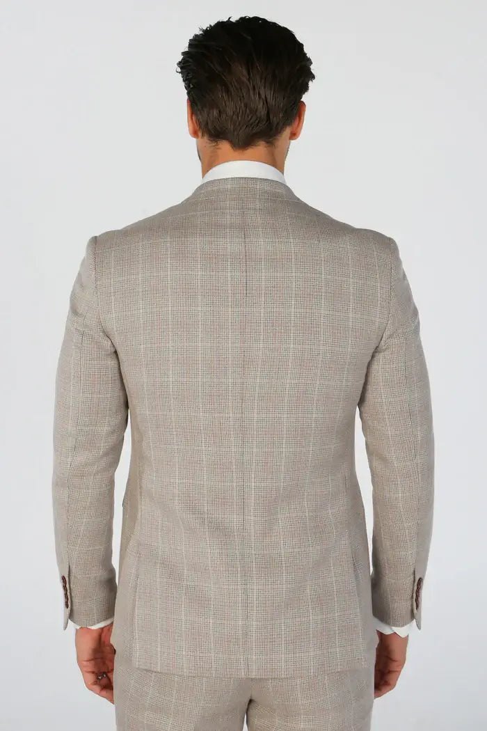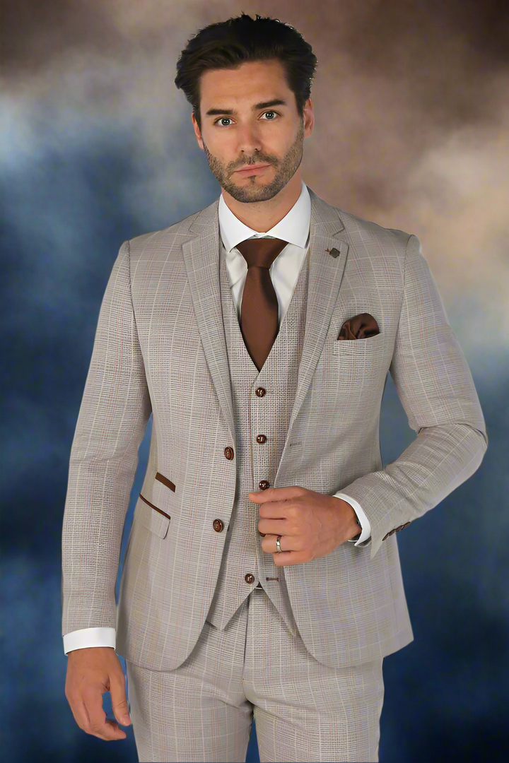 Paul Andrew Leo Men’s 3 Piece Check Suit - Beige or Green - MENSWEARR.COM - Beige / 34 / 28 - Men’s Tweed Suits