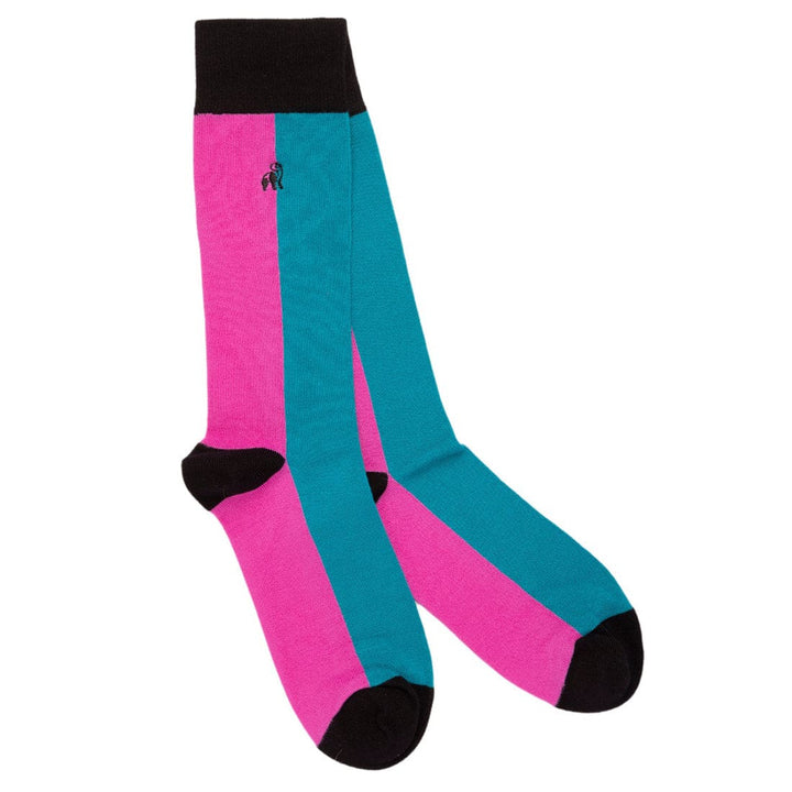 Pink / Aqua Vertical Stripe Socks - UK 7-11 (US 8-12 / EU 40-47) - Socks