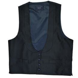 DESCRIPTION Look on-trend in vintage-inspired Tuxedo Waistcoat. Every man needs a great waistcoat that never goes out of style. This popular tuxedo design Black Silk Scoop Neck Waistcoat detail is...