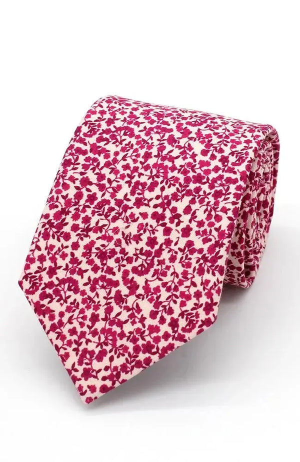 L A Smith Raspberry On Ecru Miniature Floral Tie And Hank Set - Accessories