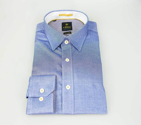 Mens Classic Collar Mid-blue Oxford Stretch Shirt by Cavani - Shirts