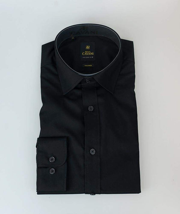 Men’s Easy Iron Black Slim Fit Shirt by Cavani - MENSWEARR.COM - Men’s Shirts